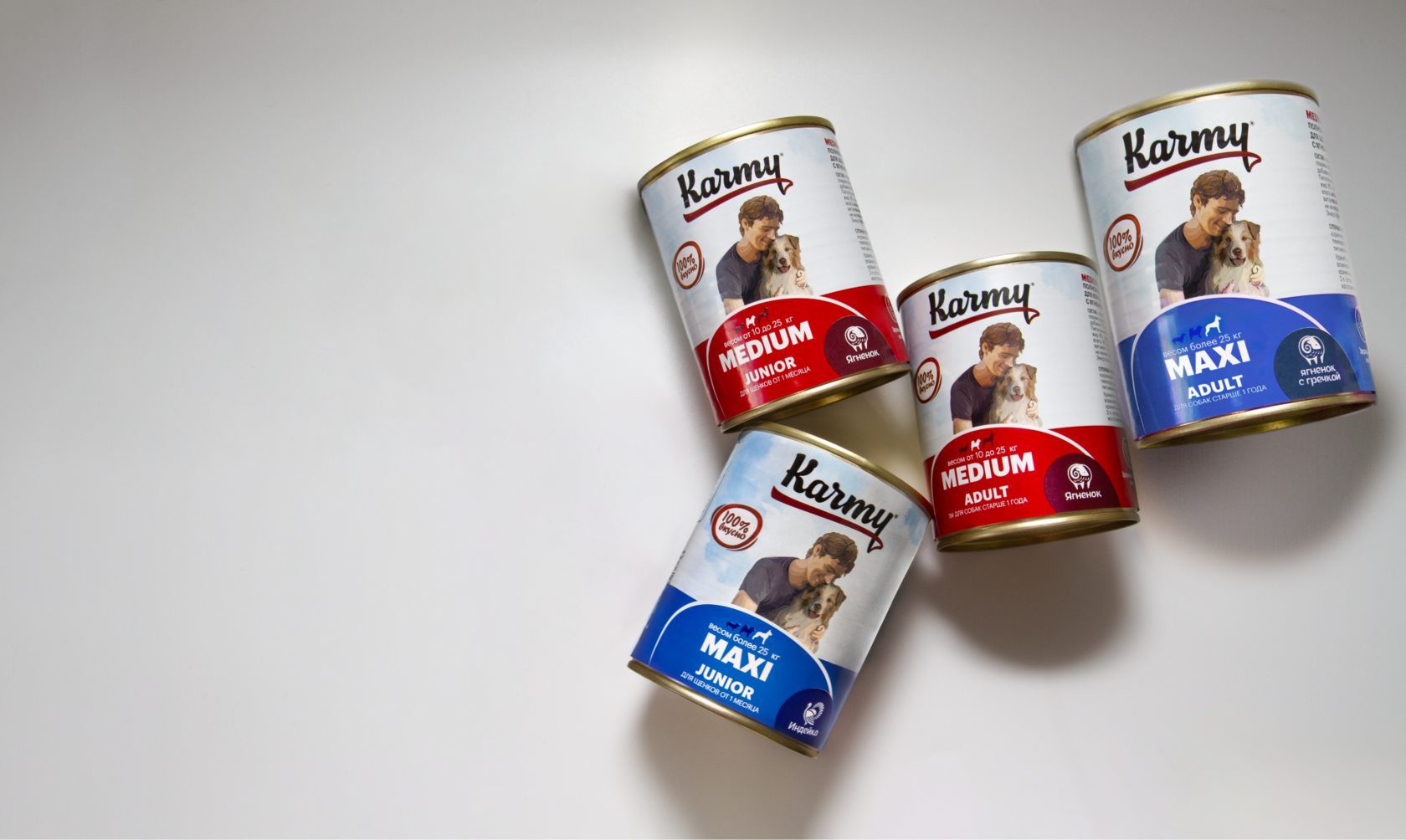 - УТ-8 080 KARMY MEDIUM Adult MIX Акция Полнорационный консервированный корм для взрослых собак средних пород (ягненок, телятина, индейка), 340г*12шт,